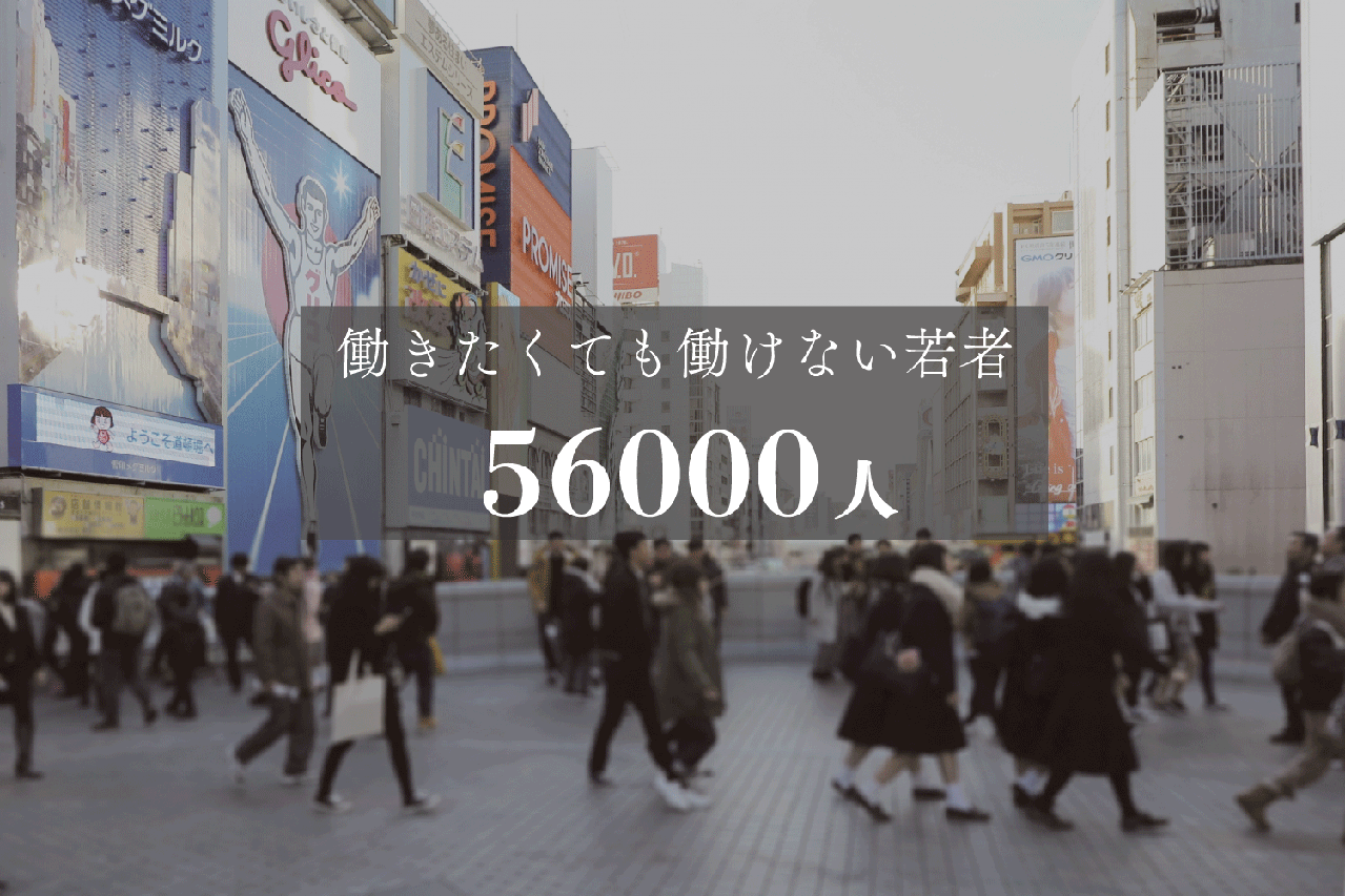 大阪に住む56,000人の若者が「働きたいけど働けない」状態にあります。苦境におかれる大阪の若者をみんなで支えていくため、力を貸してください。