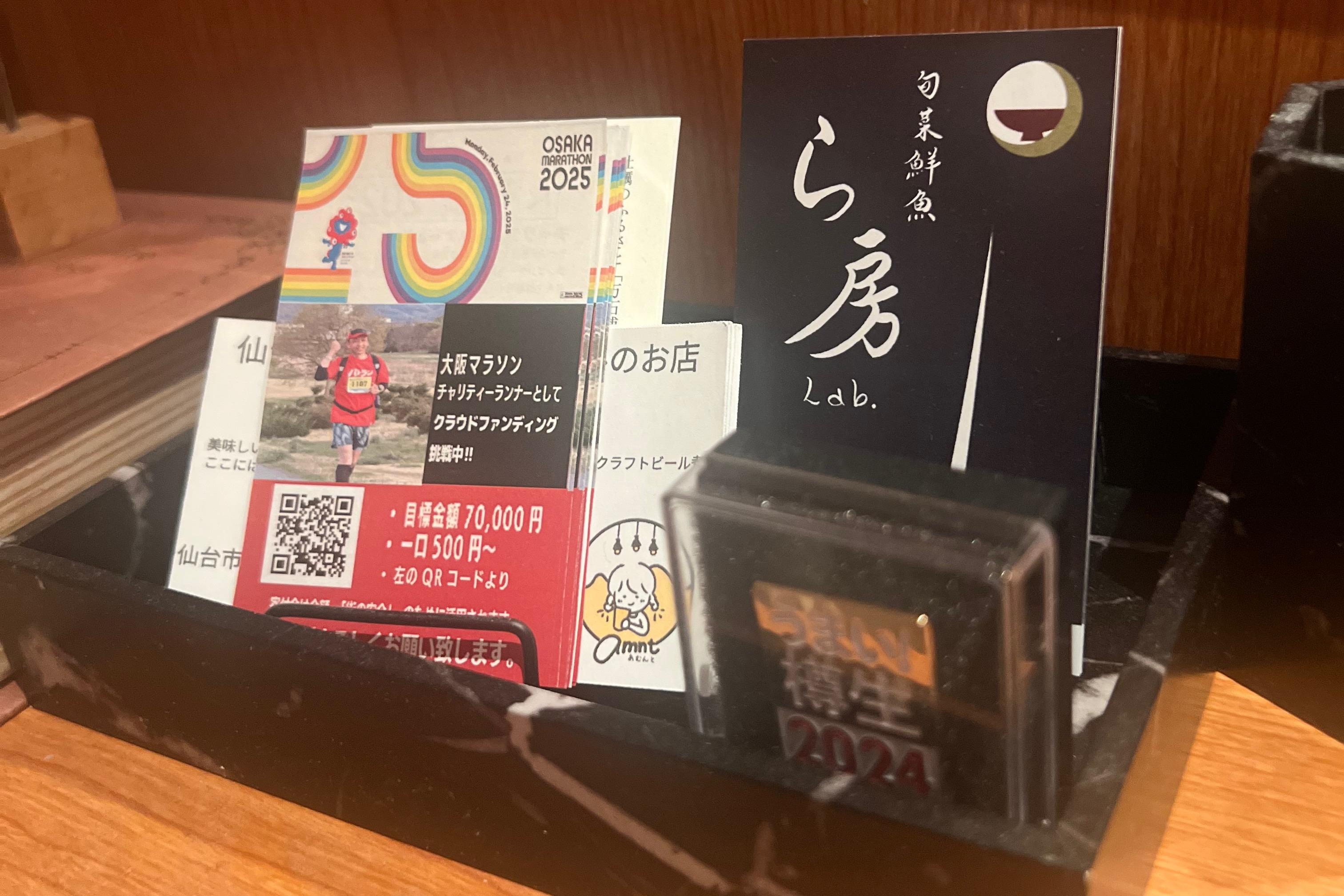 お世話になっている国分町の呑み屋「旬彩鮮魚ら房」さんに大阪マラソンの告知を今年も置いていただきました!laboという英語がお店の名前ですが、その名の通り様々なお料理を見た目だけではなく味でも挑戦している素敵なお店です。ぜひ仙台で呑む際にはご指名をお願いします🙋