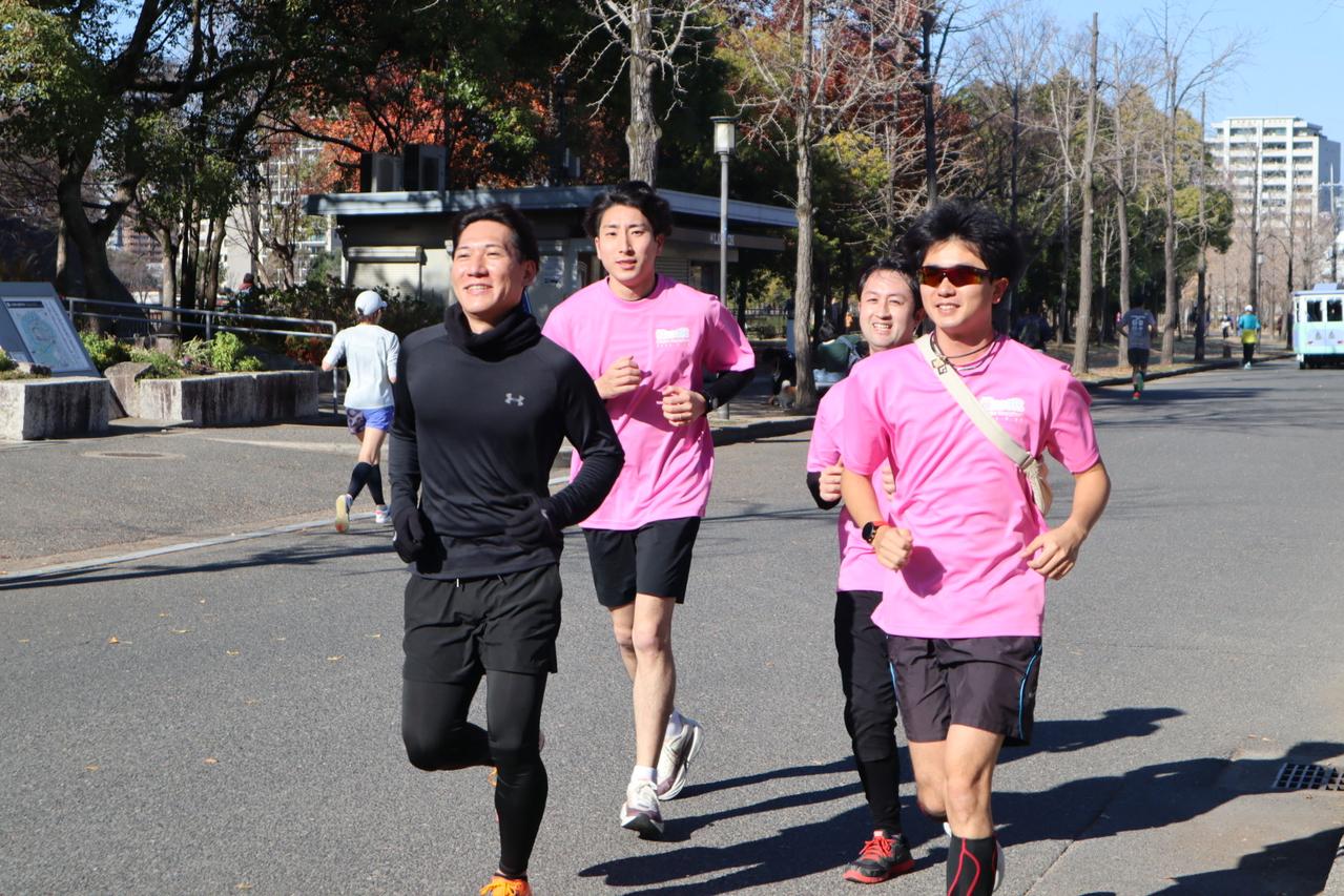 その後は大阪城公園へ移動し、みんなで一緒にランニング。12月とは思えない最高気温20℃の中、約1時間、お互いに交流しながら気持ちよく走る時間となりました。