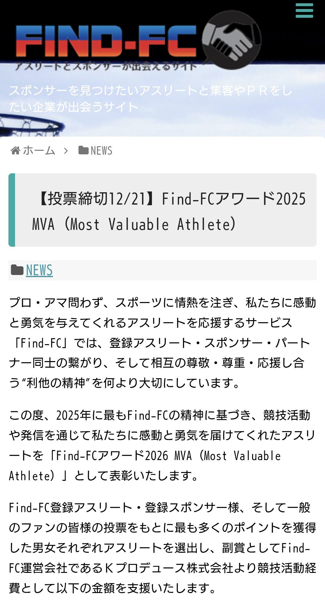 「Find-FCアワード2026」の投票サイトが公開されました。