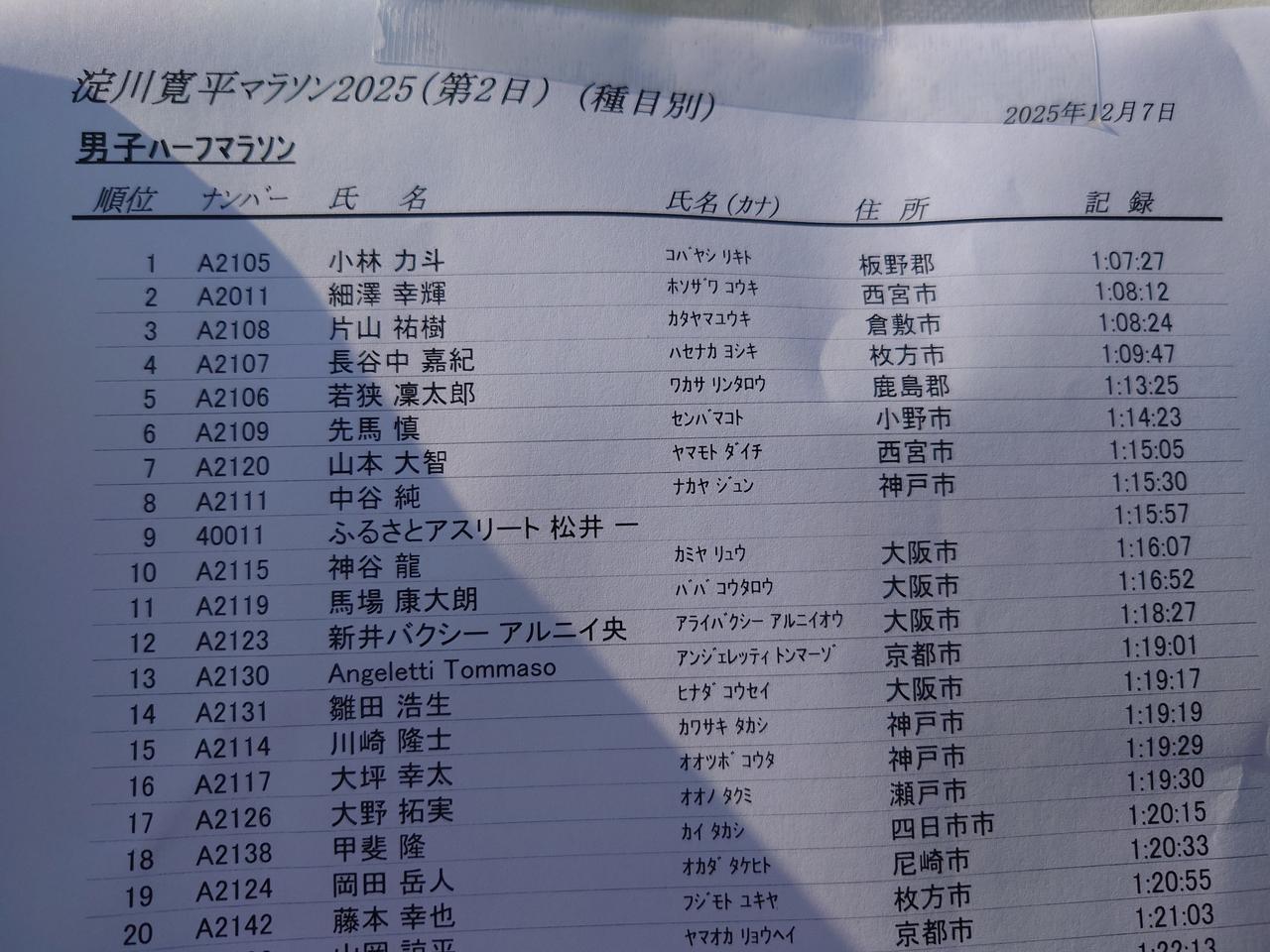 2025年、淀川・寛平マラソン(ハーフの部)に