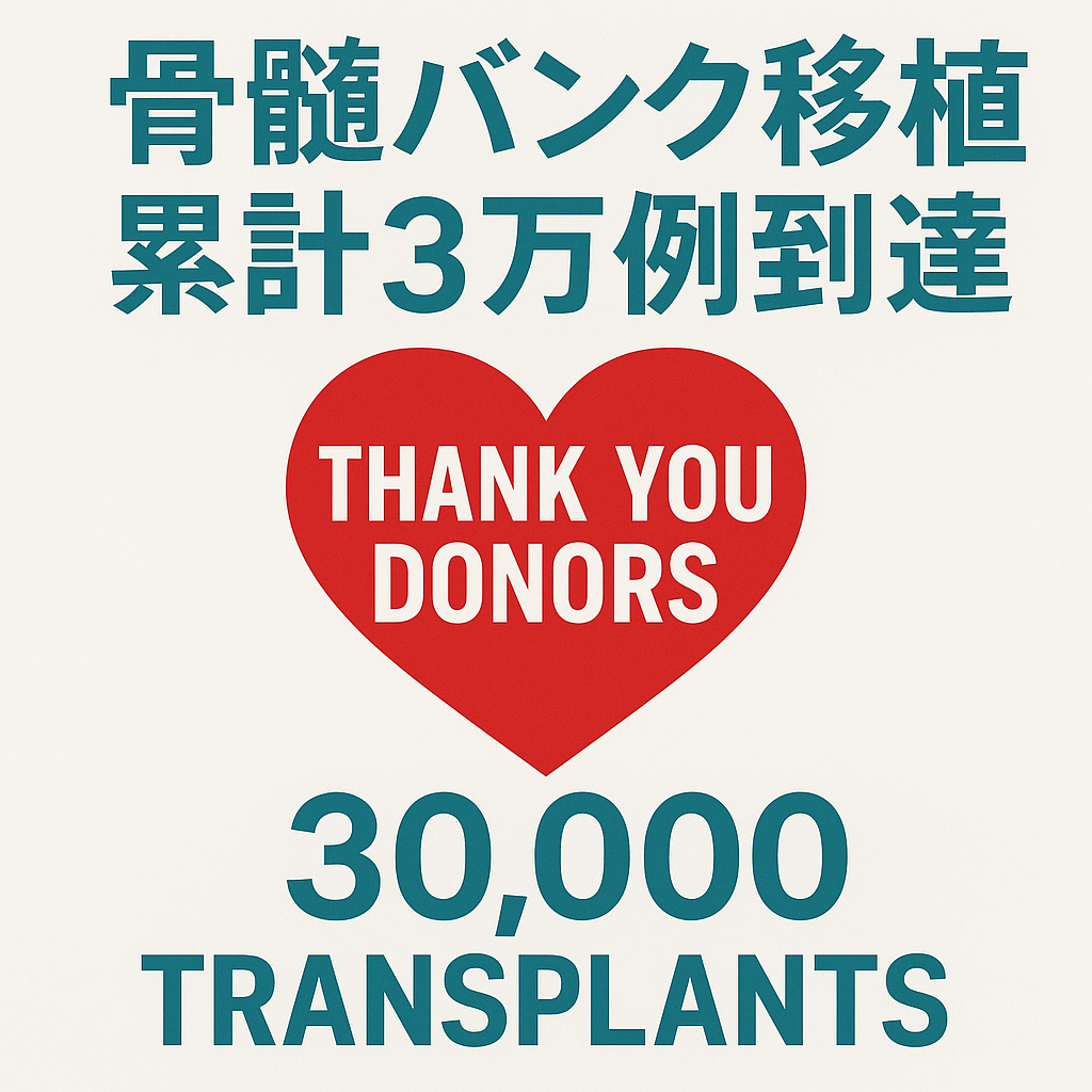 骨髄バンクを介した非血縁者間の造血幹細胞移植数が累計3万例に到達しました。